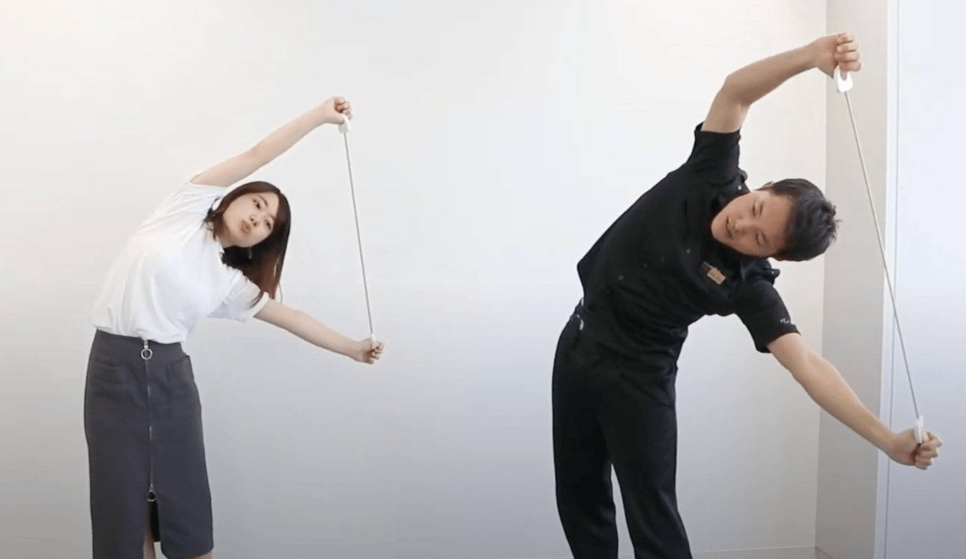 今回は身体の側面をぐーんと伸ばします。毎日続けることで身体の柔軟性を高めましょう。
