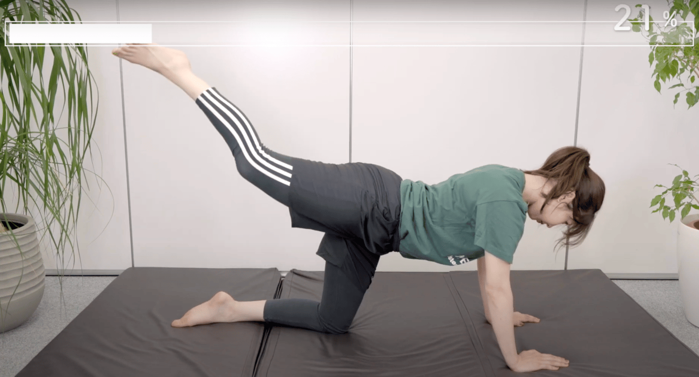 3種類の動きを組み合わせ、お尻から腿、お腹まで鍛えていきます。