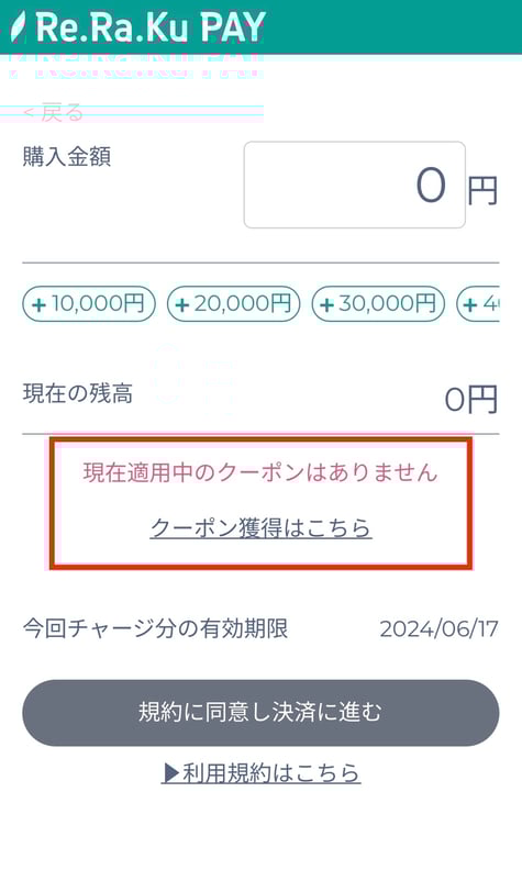 【Re.Ra.Ku PAY】チャージ増額クーポン取得方法と適用方法