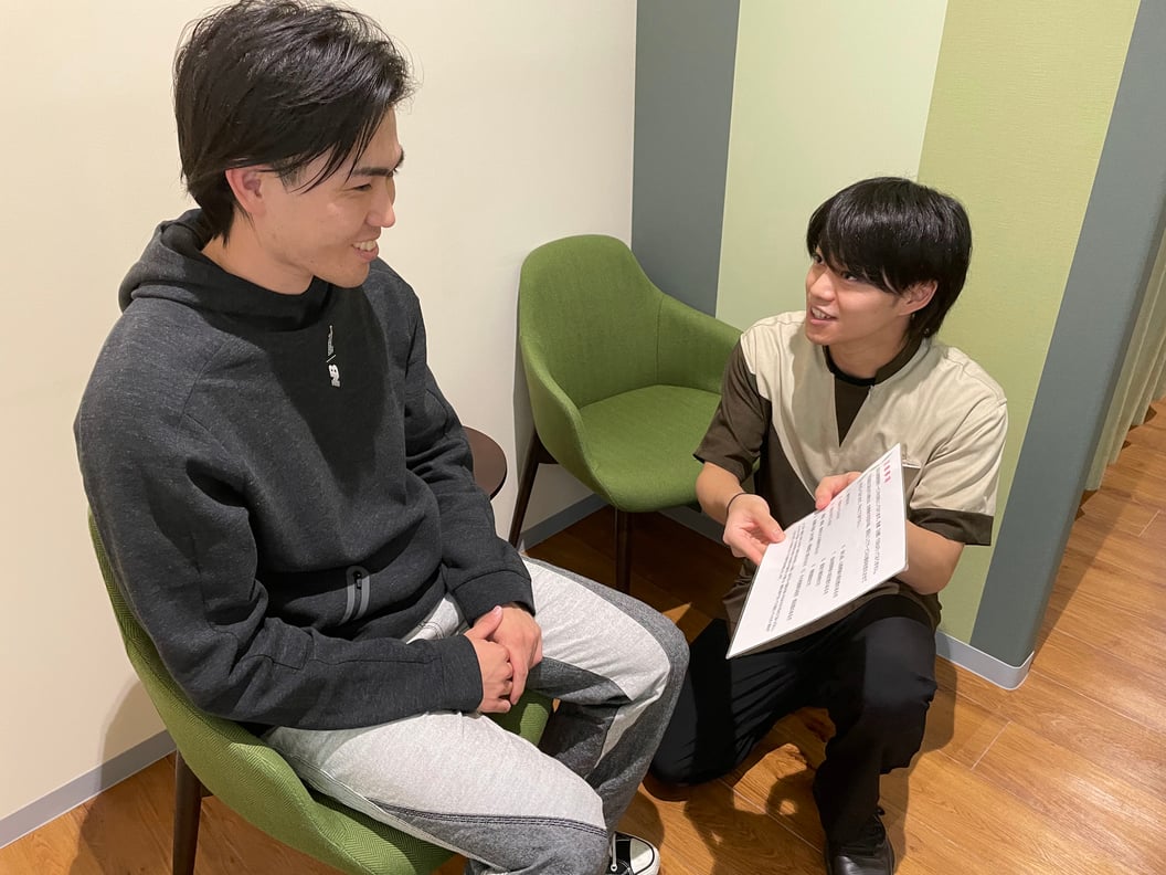 施術前に疲れている場所などをヒアリングし、施術中はいつ疲れが出るかなど具体的な問いかけをしていきます。