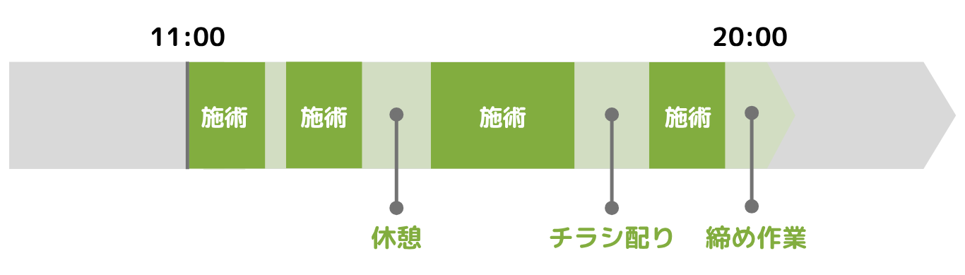 お客様に来店してもらえるよう、店舗周辺でのチラシ配布やキャンペーン告知など、地域に向けた認知活動を積極的に行います。