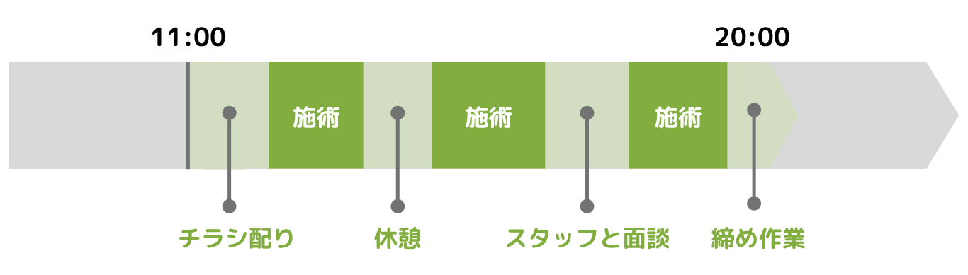 お客様に来店してもらえるよう、店舗周辺でのチラシ配布やキャンペーン告知など、地域に向けた認知活動を積極的に行います。