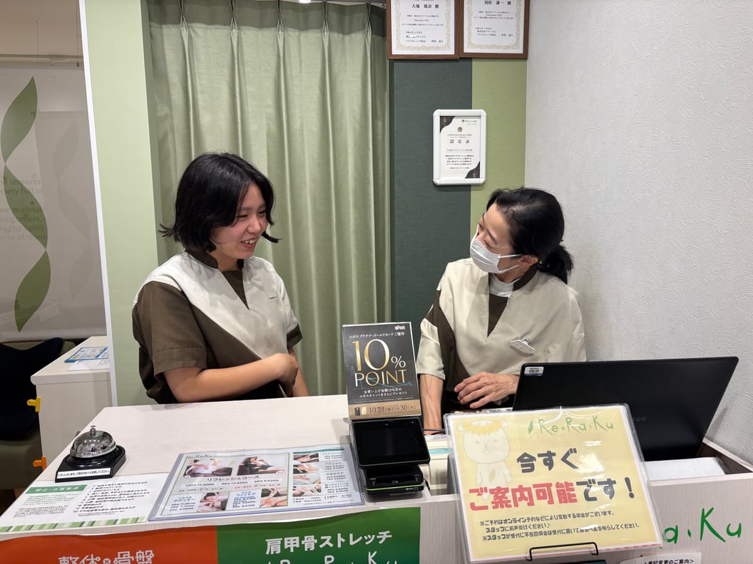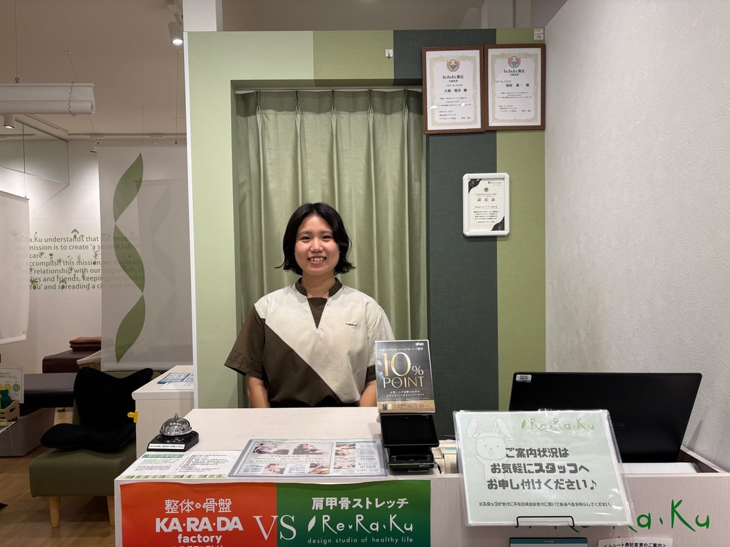 「施術ができるようになるか不安…」という気持ちを抱えながら、未経験でリラクゼーションサロン Re.Ra.Ku に入社した R.Oさん。