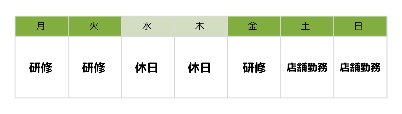週の半分は研修担当としてスタッフのサポートをして、残りの半分は店舗で施術や集客も担当しています。