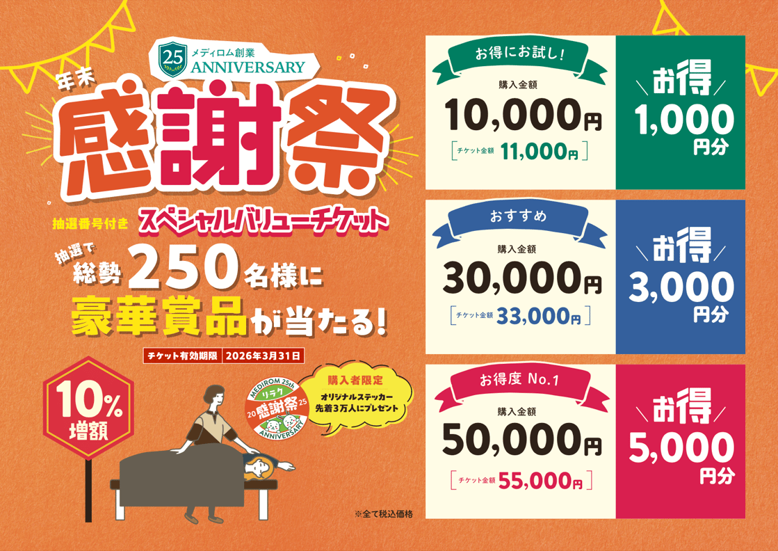 施術に利用できる11,000円分のスペシャルチケットを10,000円で販売いたします!