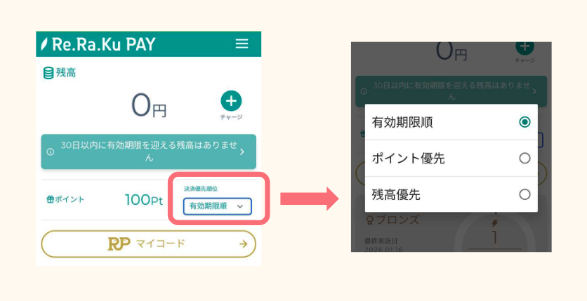 【Re.Ra.Ku PAY】決済優先順を3種類に拡張