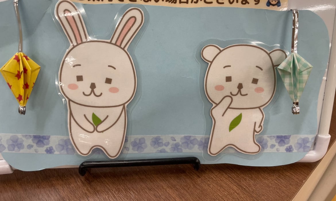 スタッフの富澤が折り紙でカワイイ傘を作ってくれました♪