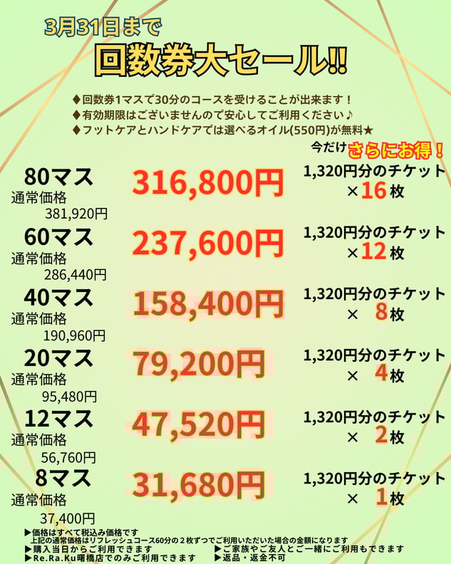 【3月31日まで限定!】回数券セールのお知らせです!