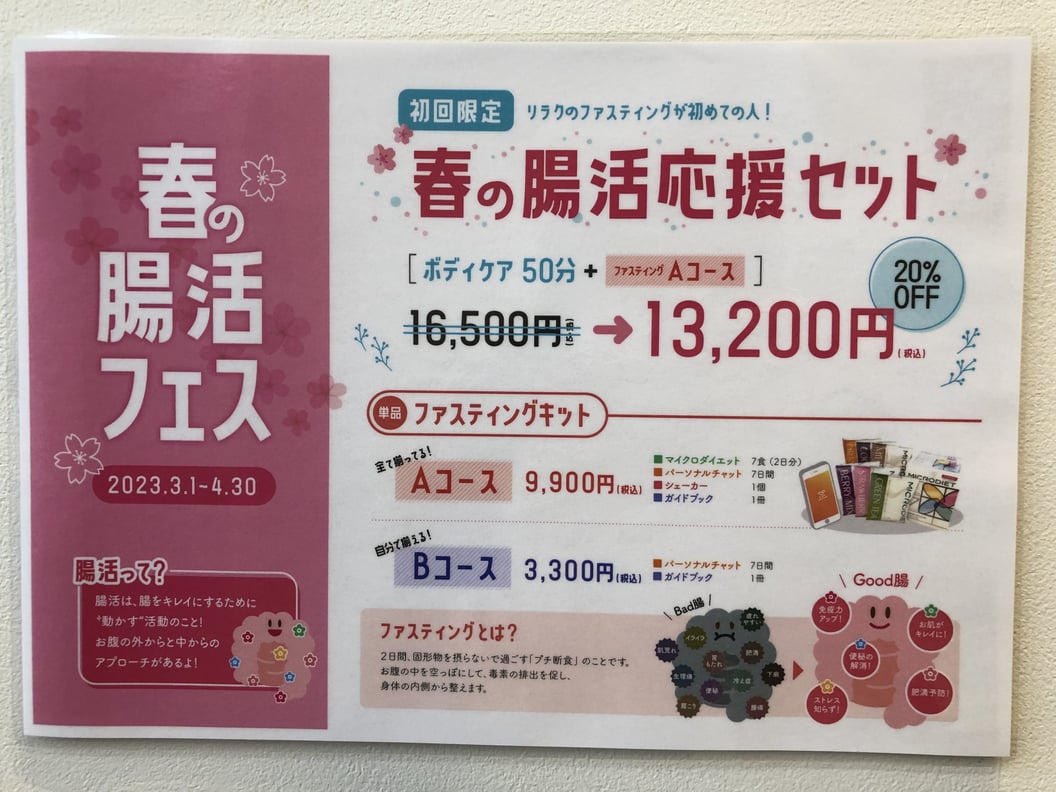 そんな方には、今リラクでキャンペーン中のファスティングがイチオシ!!!