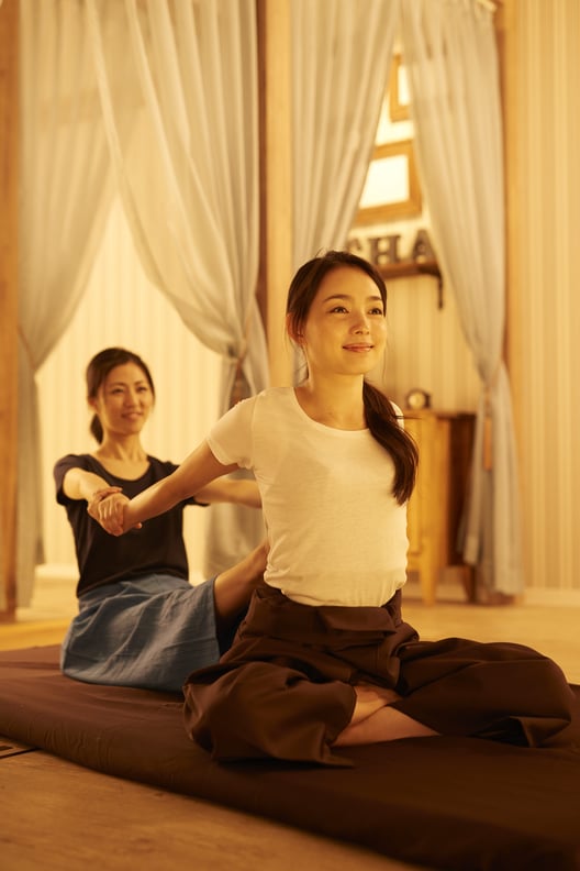 心地よいストレッチでお身体全体を芯からほぐしていきます。タイ古式ストレッチのスタンダードなコースです。