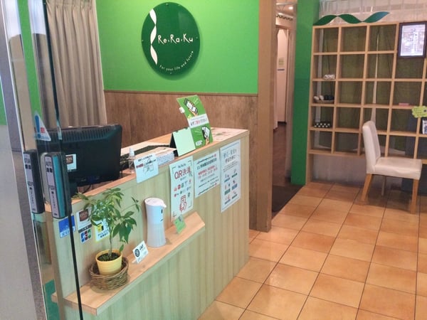 ⑤パークスクエア内(立体駐車場)1F栄光ゼミナールを抜け左に建物に入って行くと真正面に緑色の看板 ReRaKuがございます。