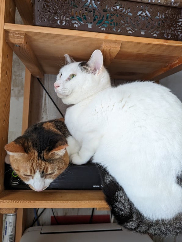 以前はこのスペースで2匹一緒でも余裕があったように見えたのですが…