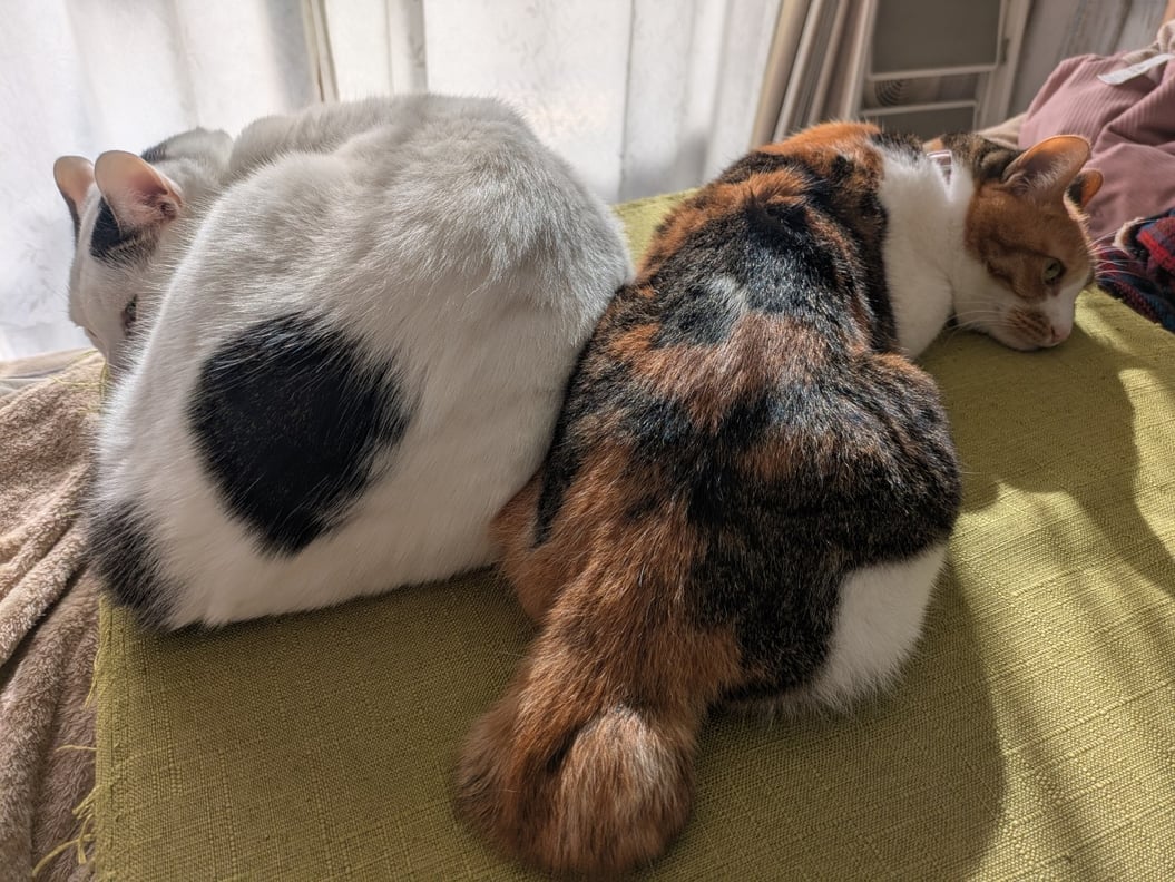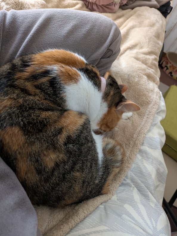 足の上が快適なわけではないと思うのですが、こんなにくっついてもらえると幸せを感じます。