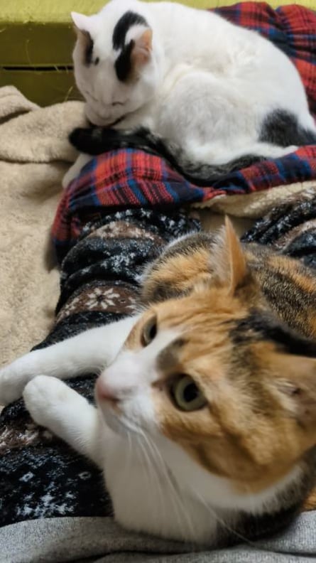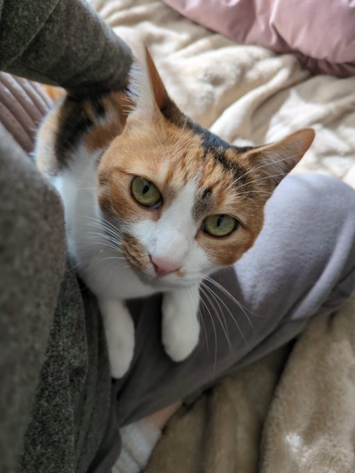 あぐらなどをしている時に、前足を乗せて収まる。