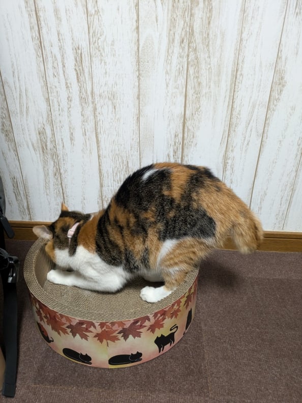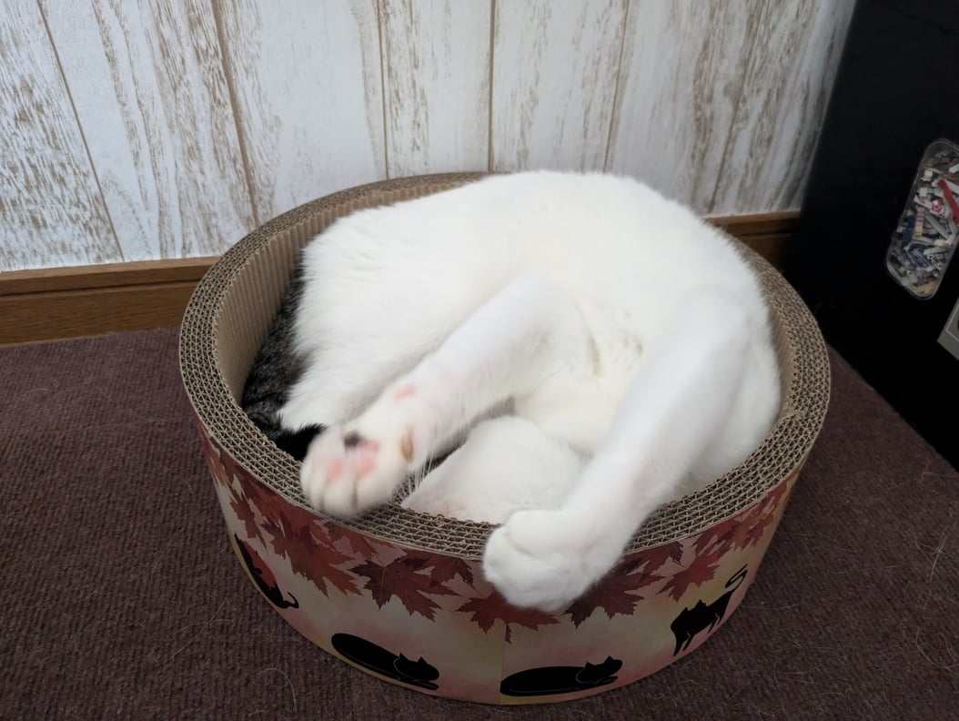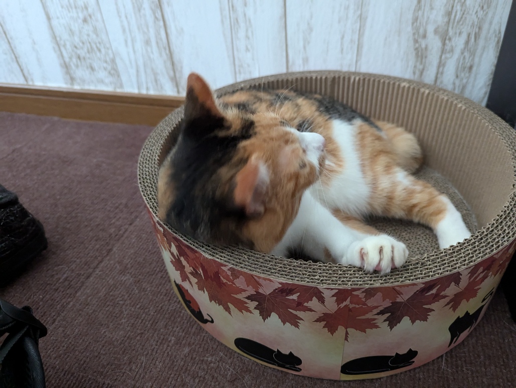 大きさは、大きい方の猫がちょうど丸まって収まるぐらい。