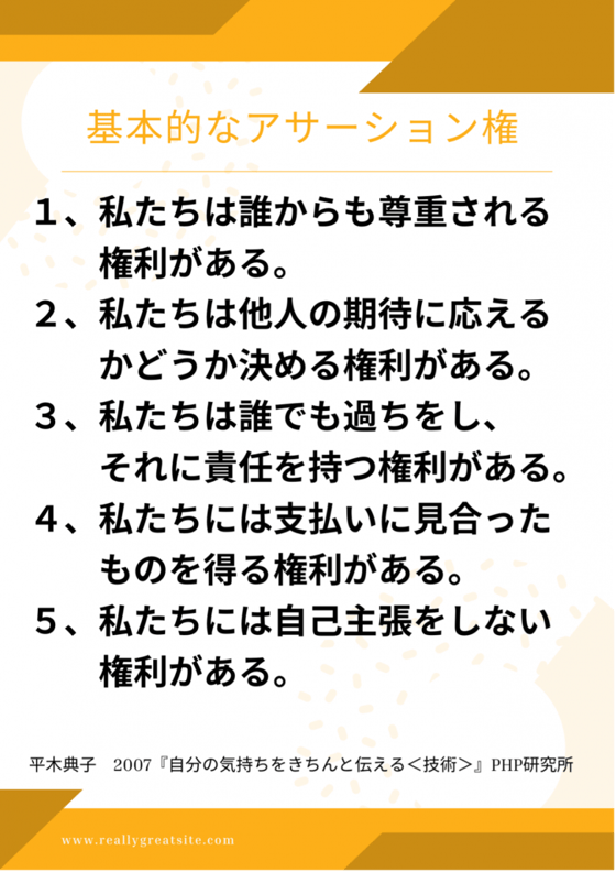 そもそもアサーティブネスという考えは、根本に「アサーション権」という考え方があります。
