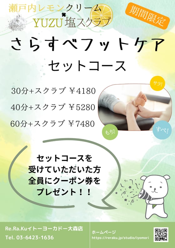 いつものフットケアにスクラブケアが入った「さらすべフットケア」を体験してみませんか?