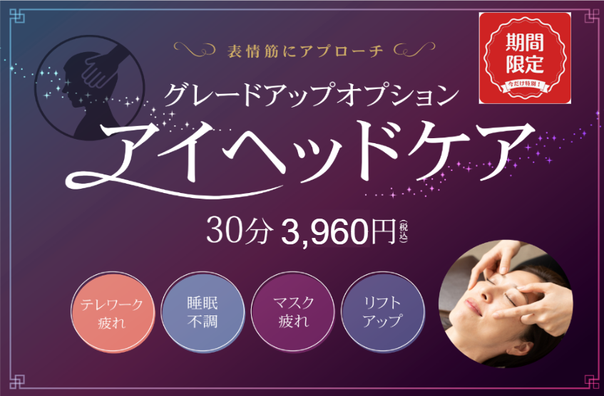 +550円で爽快グレードアップアイヘッドスパに出来ます。