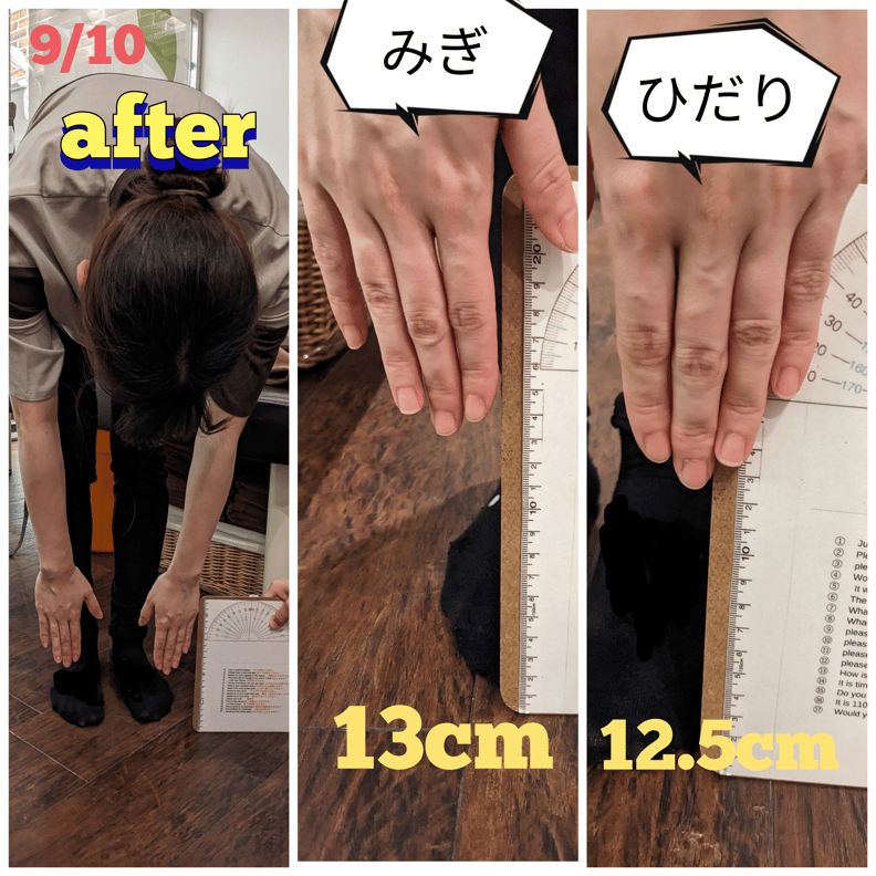 施術後☆右-13cm/左-12.5cm …だいぶ近づきました!!!けどまだ伸びしろありまくりです!