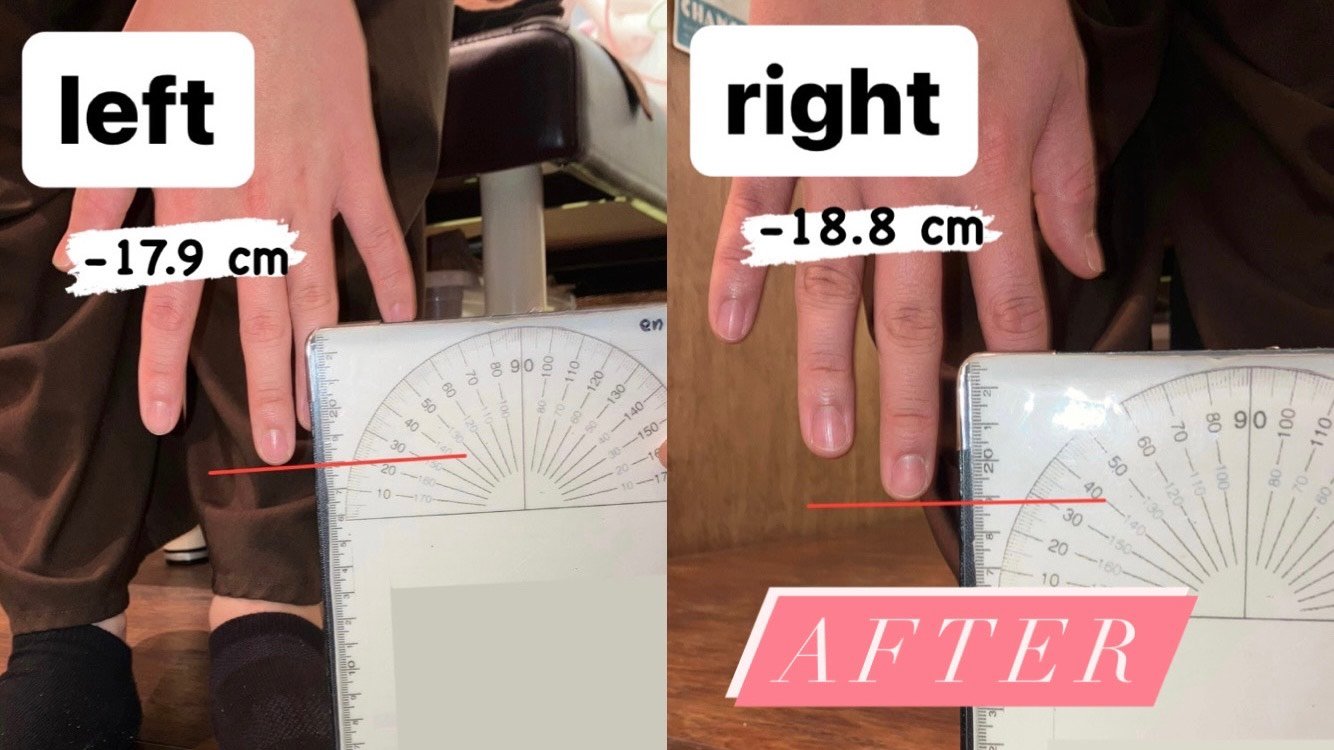こんにちは!Re.Ra.Kuかわぐちキャスティ店です!暑いですね、、!急に寒くなる事もあったり、昼夜の気温差もあったりもするので油断せず体温調節していきましょう♪ 現在 ”スタッフ健康化【トミーさん前屈0センチ計画】” を実施しております!今回はオプションの一つである "脚こしストレッチ" (20分)などを用いてどれだけ柔軟性が変化するかを記録しています!本日は15回目です!今回も”ルーツストレッチ”を加えて行いました!前回の更新からすぐですが、より頻度を高めていくとどうなるのかをこれから実践していきます!早速結果の方を見ていきましょう…! 【実施日:3/15|施術担当者:奥畑】⇩⇩⇩ 差異➡ 右: 4.0 cm / 左:3.3 cm ついに、ついに、、!一桁台を突破しました、、!!!おめでとうございます!0cmのゴールも見えてきましたね♪この調子でどんどん縮めていきましょう! このブログを読んで「柔軟性を高めたい!」「どんなストレッチか試したい!」と思う方は是非ご来店お待ちしております。一緒に柔らかいお身体を目指していき、疲れにくいお身体を作っていきましょう!以上、スタッフ健康化【トミーさん前屈0センチ計画】の報告でした。