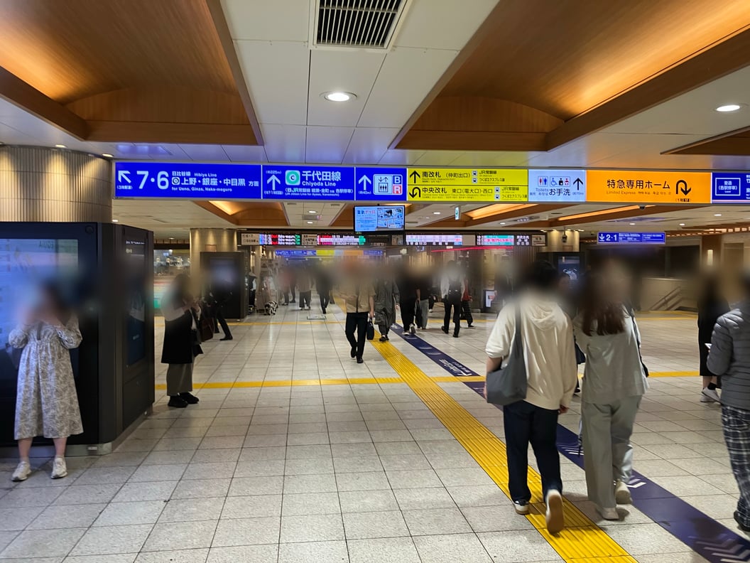 ②中央改札に入ったら、そのまままっすぐ直進してください。