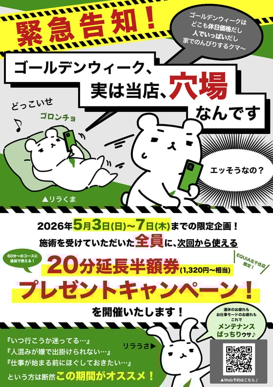 連休中にがっつり回復 & 連休明けのお身体のメンテナンス も、これでバッチリ!✨