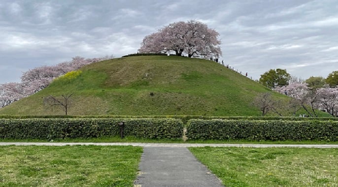 ä»ã¯ãçš²è·å±±å€å¢³ãæåã§ããããã®äžžå¢å±±ã¯ãå墳ã§é äžã«æ¡ã®æšã