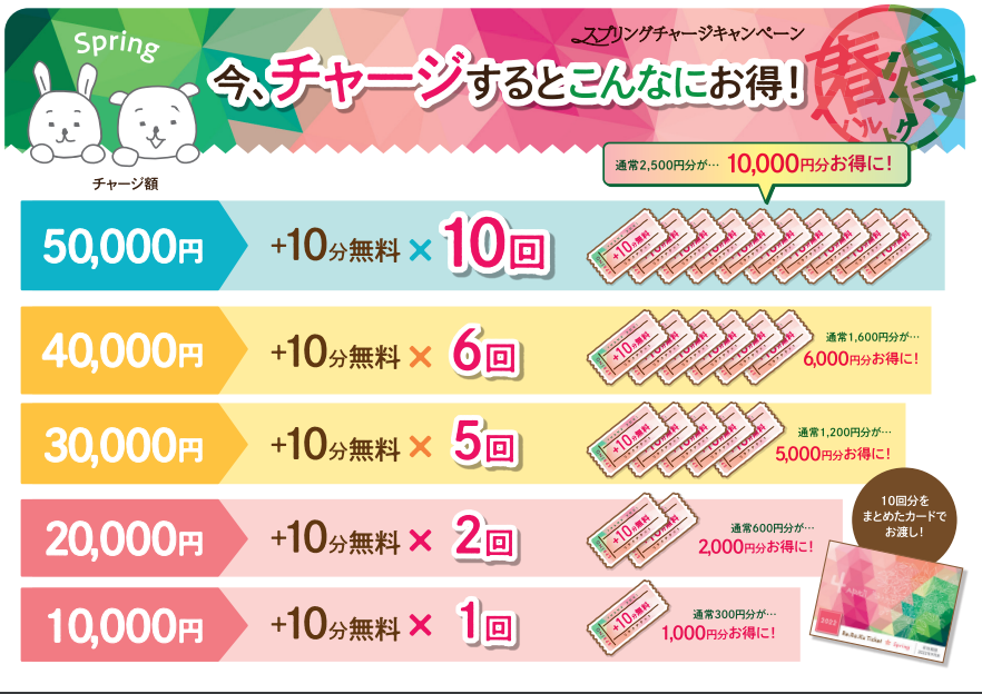 リラク北浦和店では、5/7迄「チャージキャンペーン」を実施しています。
