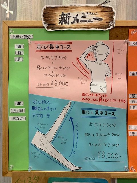 ☆お得な新セットコース「肩くび集中80分コース」「脚こし集中80分コース」