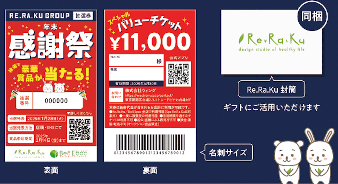 Re.Ra.Ku・Bell Epocの施術にご利用いただける11,000円分の商品券を、10,000円でご購入いただけます♪