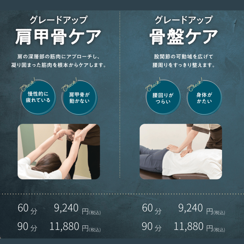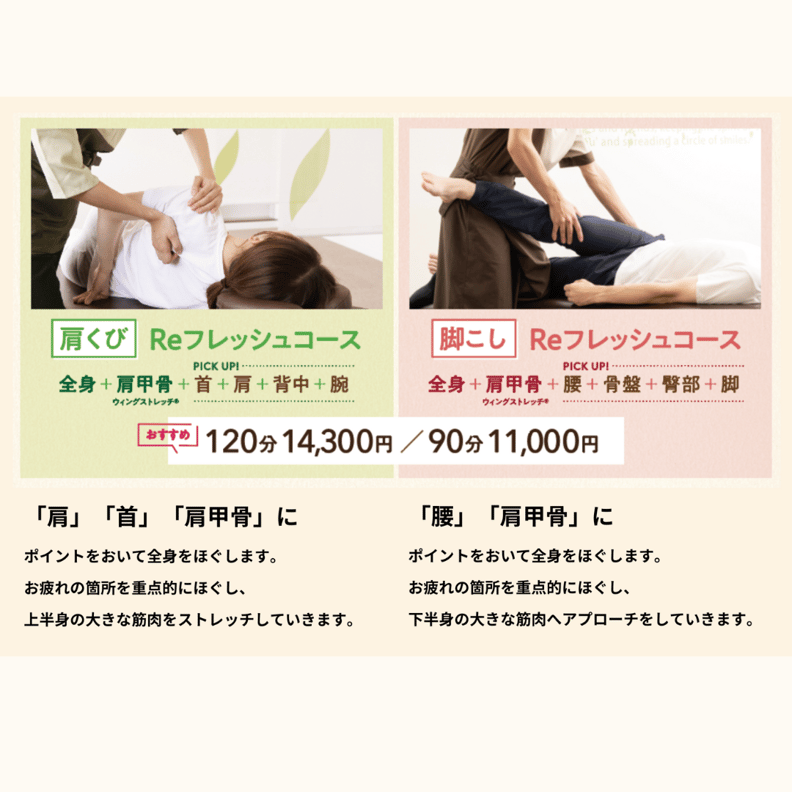 上半身メイン『肩くびReフレッシュ』と、下半身メイン『脚こしReフレッシュ』の2つがあります!