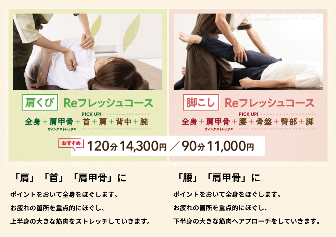 ・下半身メインの『脚こしReフレッシュ』の2つがあります!