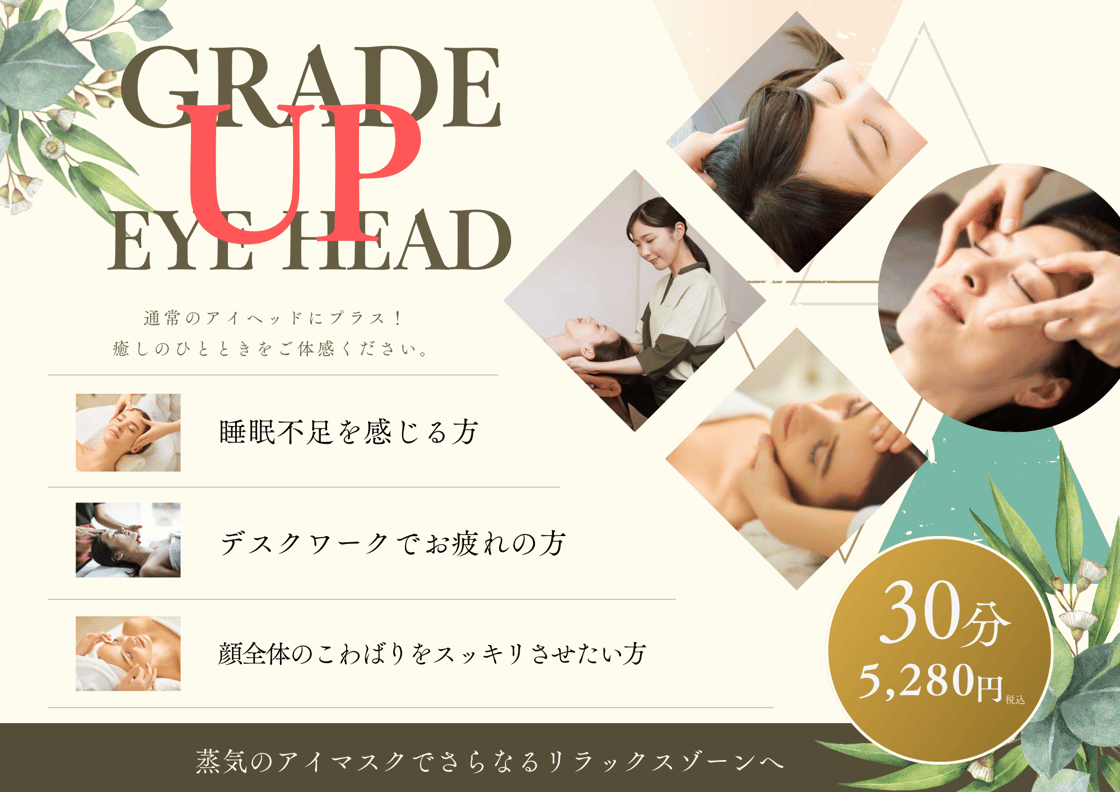いつものアイヘッドケア以上に、じっくりしっかりほぐされたい方へお勧めのコースです!