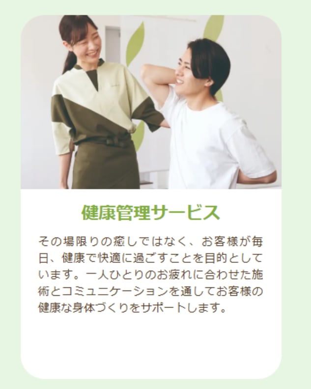 Re.Ra.ku元住吉店のコンセプトとして「健康管理サービス」というものを目的としております。