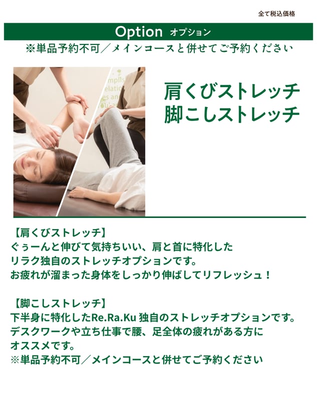 当店のリラク系ボディケアにストレッチが大きく加わったリフレッシュコースはご存知ですか?