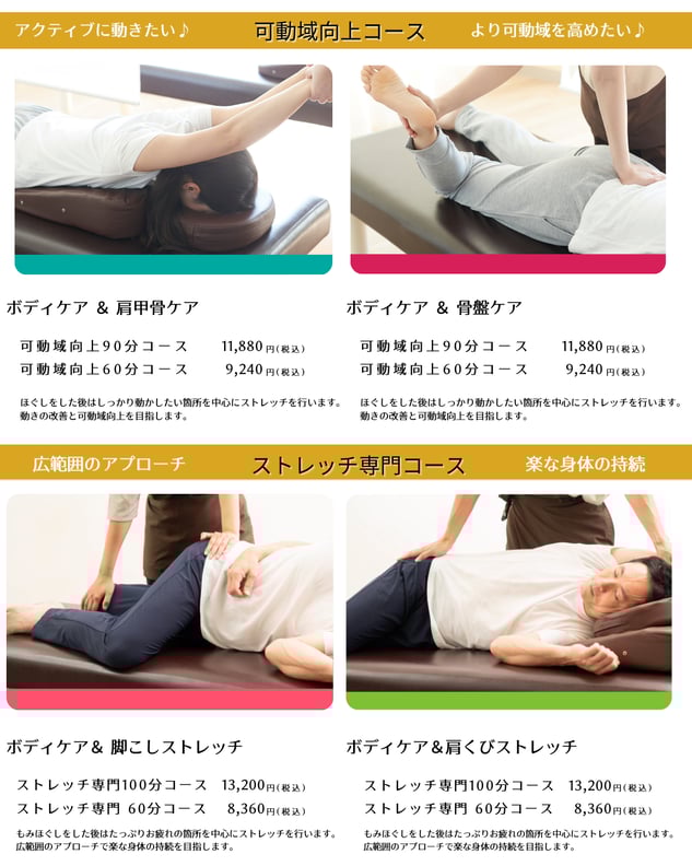 お客様の身体に合わせたストレッチが出来るコースメニュー♪
