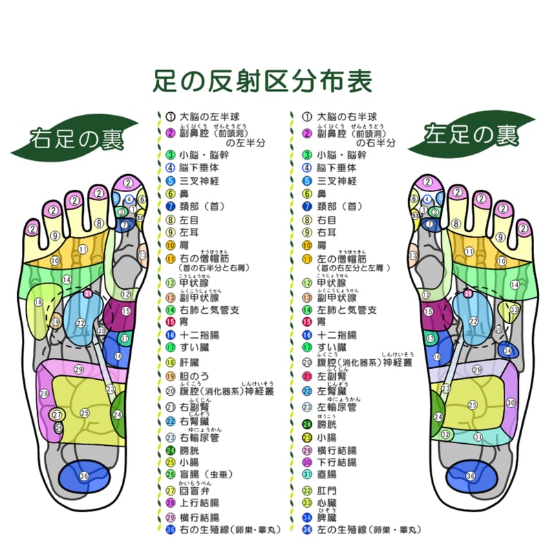 足裏にある反射躯を刺激することで、血行促進の効果や内臓系の活性化が期待できます。