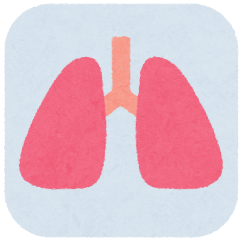 肺では、空気を鼻腔や口腔(鼻と口)を通じて吸い込まれます。 そして空気は、呼吸気管を通って肺に入ります。 肺の中に空気が入ってくると、肺内の容量や空気圧が変わり肺換気が刺激されます。 正常に吸入されると、横隔膜や外肋間筋が収縮し、胸郭が上に上がります。 肺内の容量が増加すると、空気圧が減少し、空気がどっと入り込みます。 筋肉(胸や腹部など)が弛緩すると、 肺はより小さくなり、空気圧が高まり、空気は外(体外)へ吐き出されます。