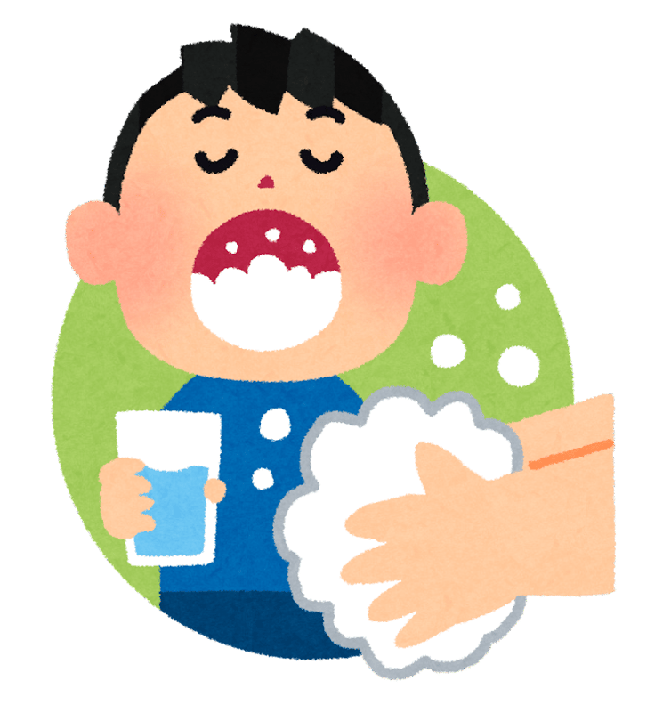 「ブクブクうがい」は口の中の汚れを洗い流します。