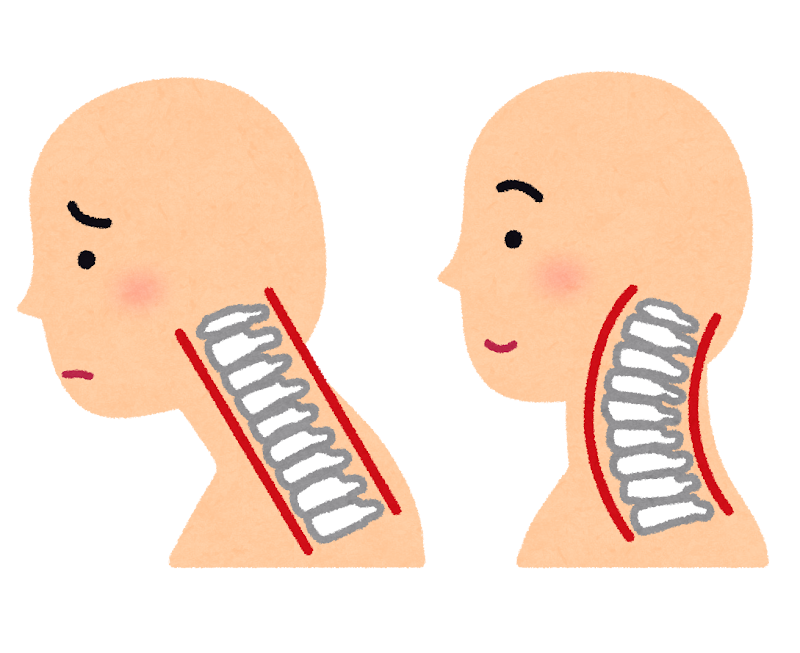 ストレートネックとは、首の骨が本来持つS字カーブが失われ、まっすぐになってしまった状態のことです。