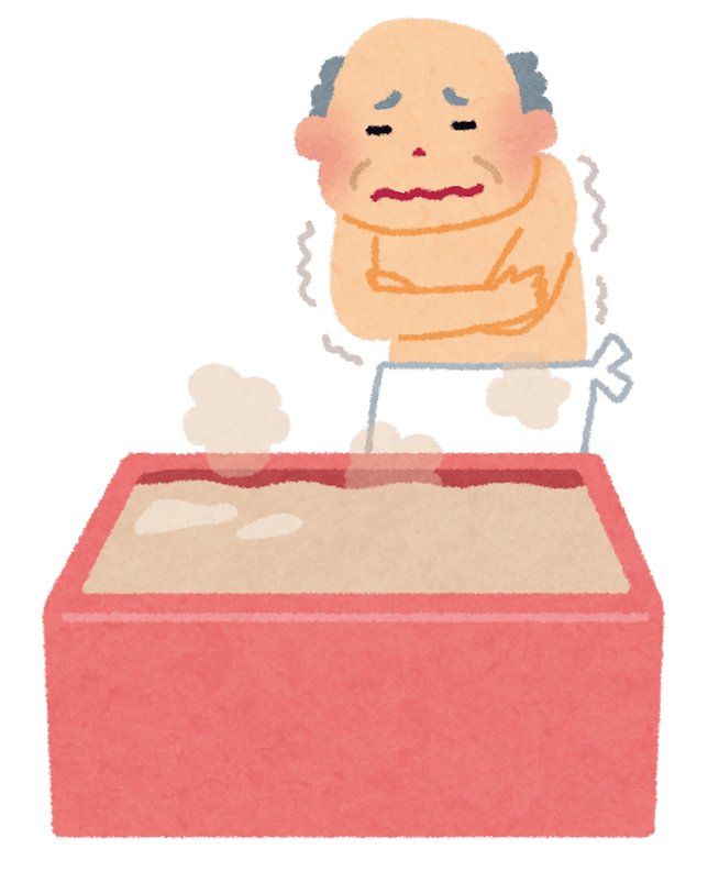 「早く温かい湯船に入りたい」と思いますが、ここで浴槽の温度が高い状態で浸かると、急に身体が温まるため、血圧が下降します。室内外で10℃以上の温度差がある場所は「ヒートショック」が起こる危険性があるとされて、とても注意が必要になります。