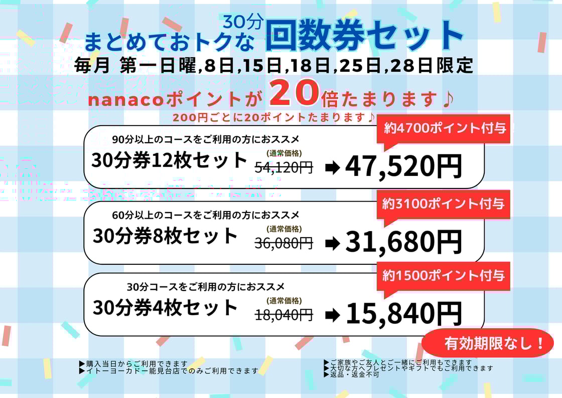 能見台店のnanacoポイント20倍キャンペーンのご紹介!