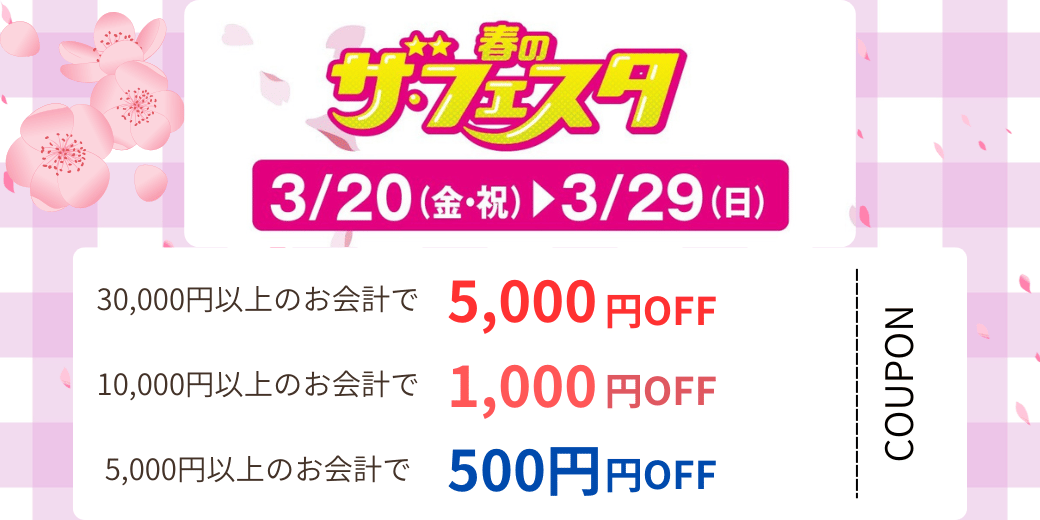 店頭にても「春のザ・フェスタ」クーポンをお配り中です!