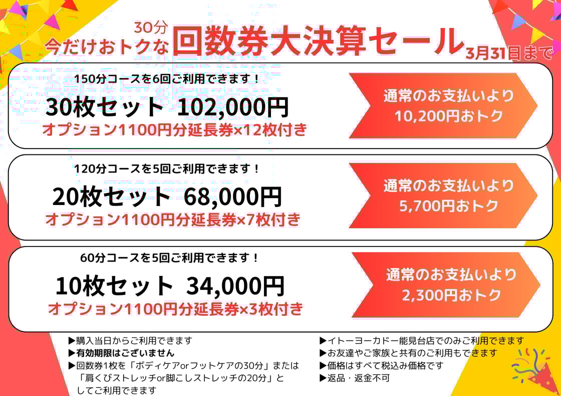 日頃からのご愛顧に感謝を込めての回数券の大決算セールも残り9日で終了となります(^^♪!