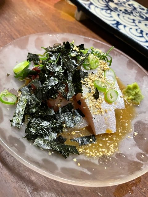 一品料理では、アンチョビポテトとお店一押しのごまカンパチを頂きました💗