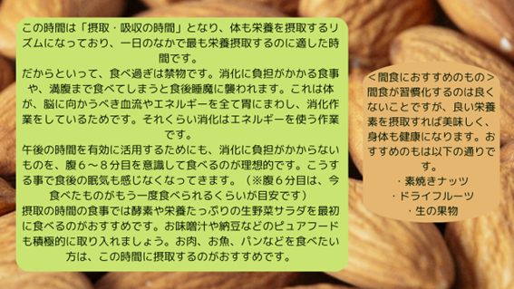 このリズムを意識することで、自然の状態に近く、体本来の力を引き出す食スタイルと
