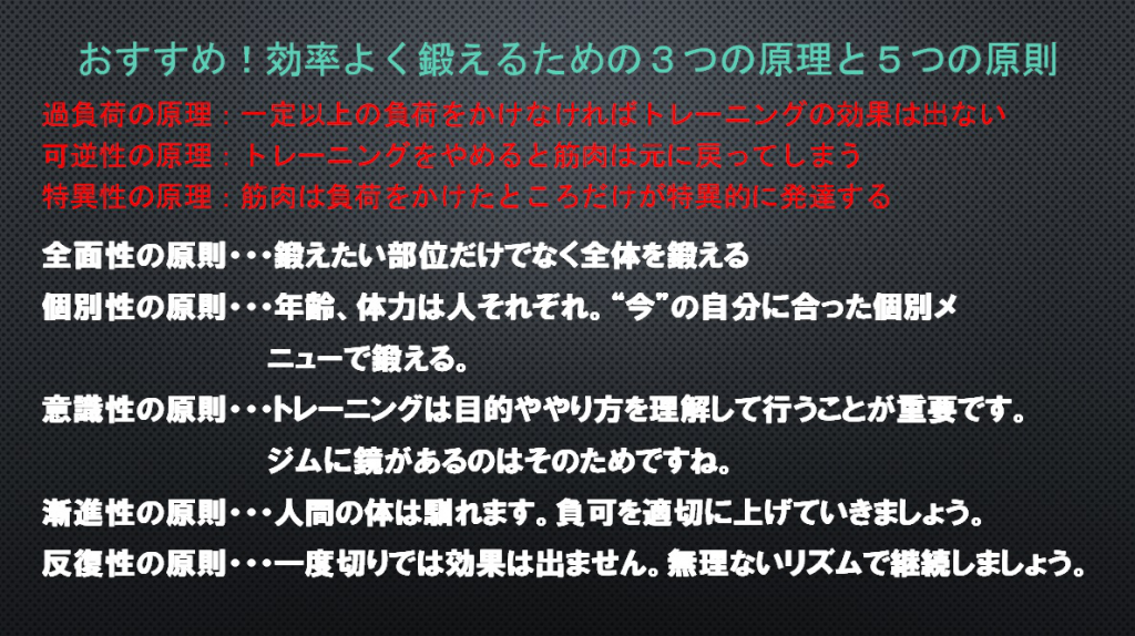 これまでの知識を基に栄養面を整えながら、具体的な部位別トレーニング方法を取り入れて、“今”のご自身に合ったからだを手に入れて下さい!