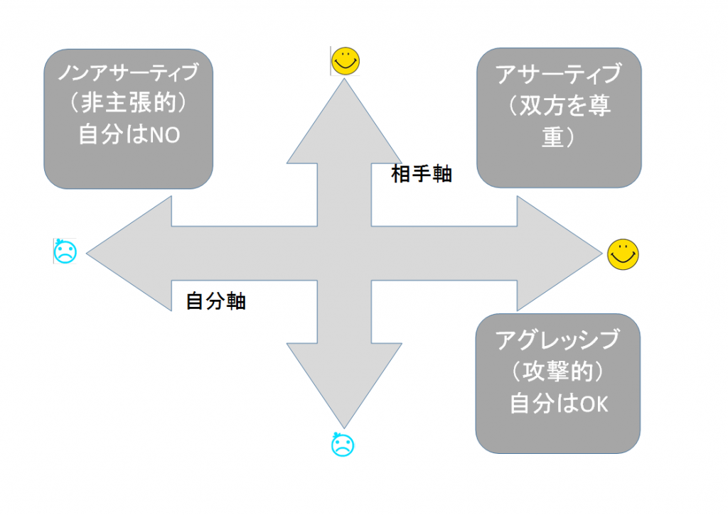 アサーティブトレーニングでは、まず対人コミュニケーションのタイプを知ることから始めます。