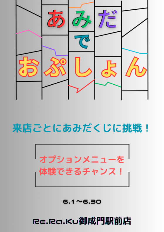 あみだくじを引いて、4種類のオプションのどれかの手技体験ができるチャンス!