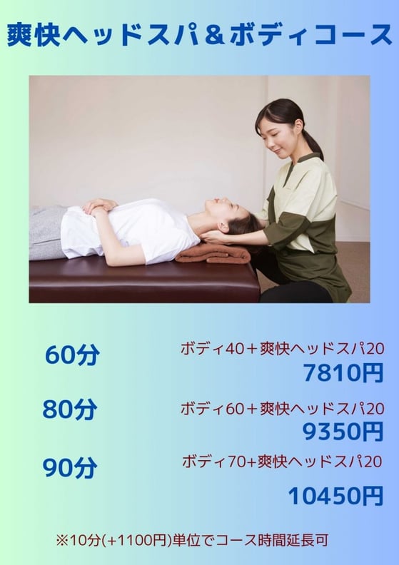 ・ボディケアコース 40分 + 爽快ヘッドスパ 20分